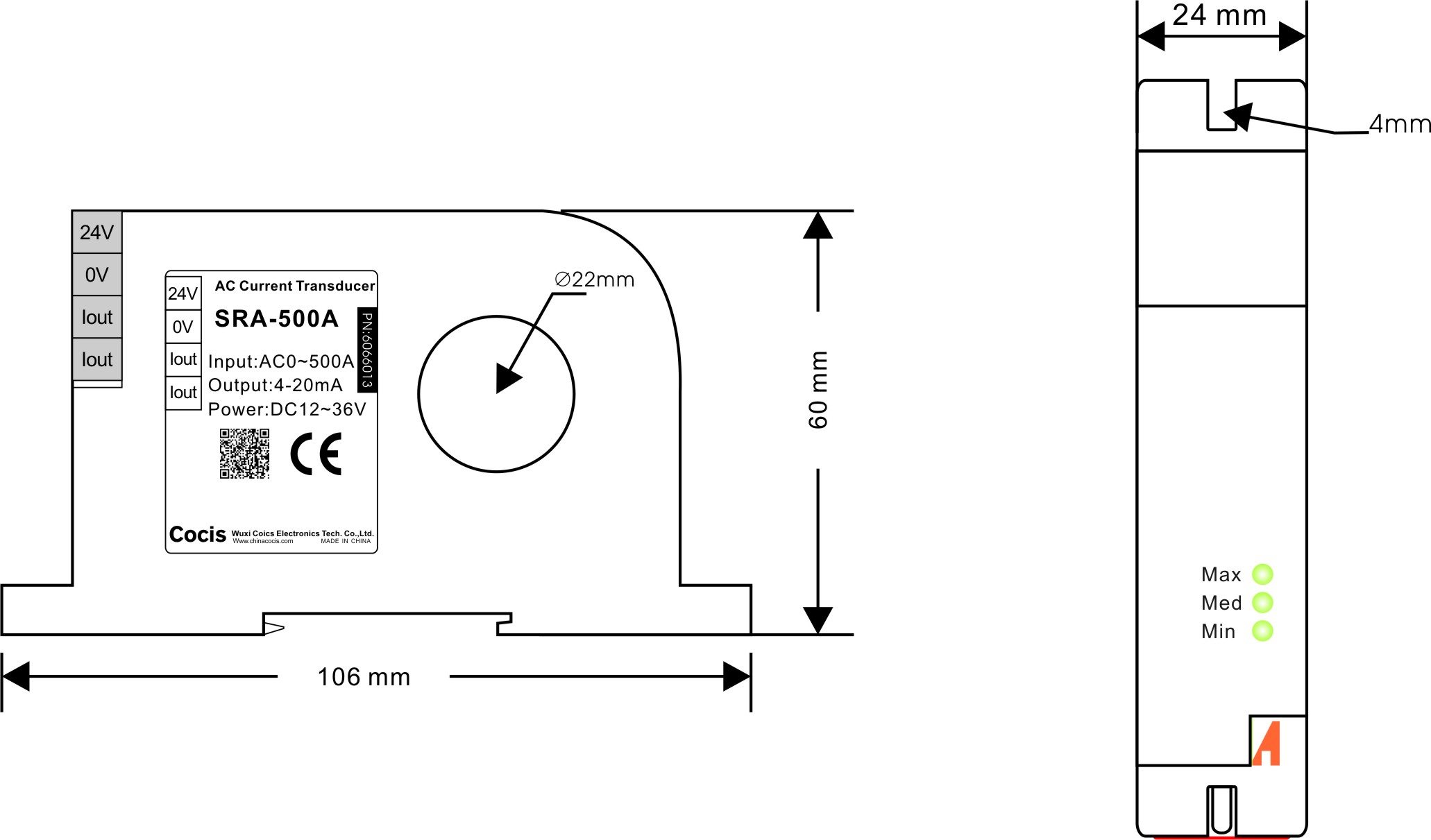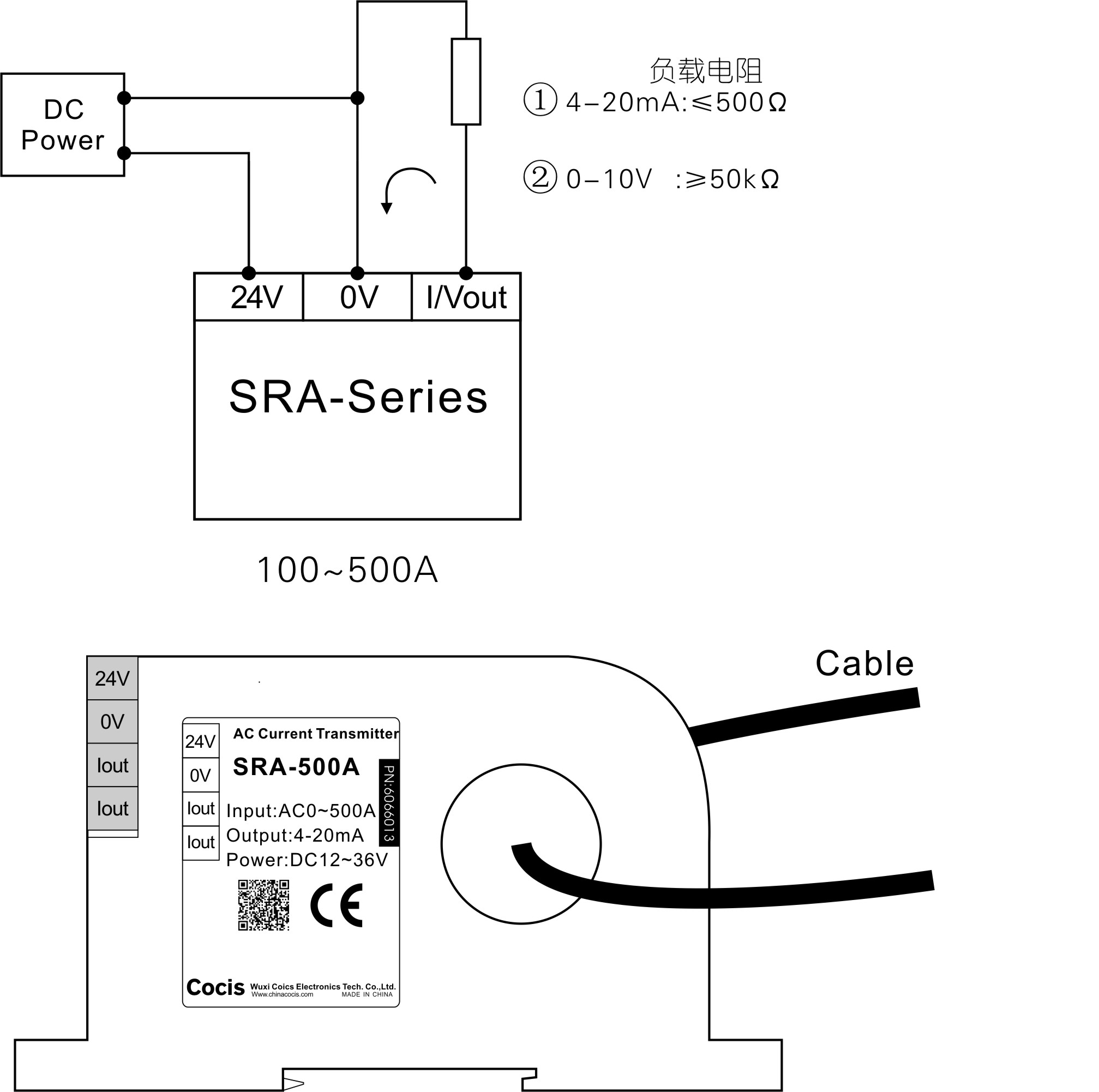 SRA系列交流电流(电压)变送器通过专用外置CT转换为标准的模拟量信号4~20mA和0~10V输出。产品采用12位ADC高性能微处理器具有高稳定性、高分辩率和高精度等优点,
