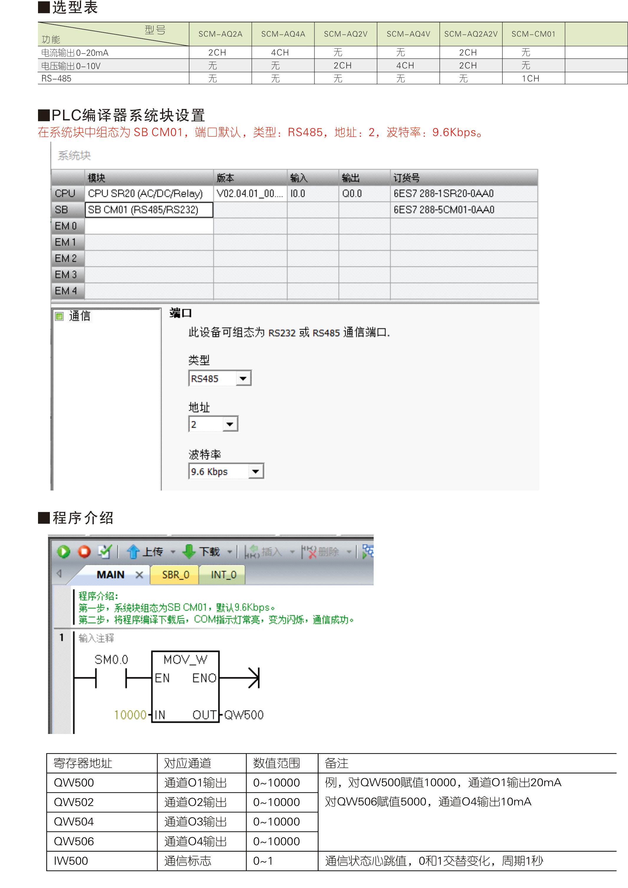 SCM-CM和AQ信号板系列采用西门子PPI协议直接与CPU内部寄存器实现互访,直接插到SMART-200PLC背板插口上,通讯高效快速稳定,用户使用上与SB-CM01相同设置方法,本产品具有更高的性价比,能大幅降低用户的使用成本。